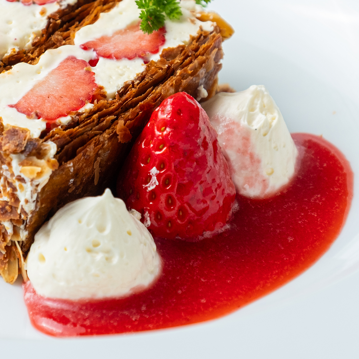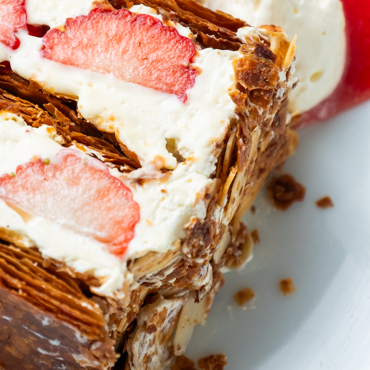 フランス発祥のデザート。旬の苺を使って作る、苺のミルフィーユ。