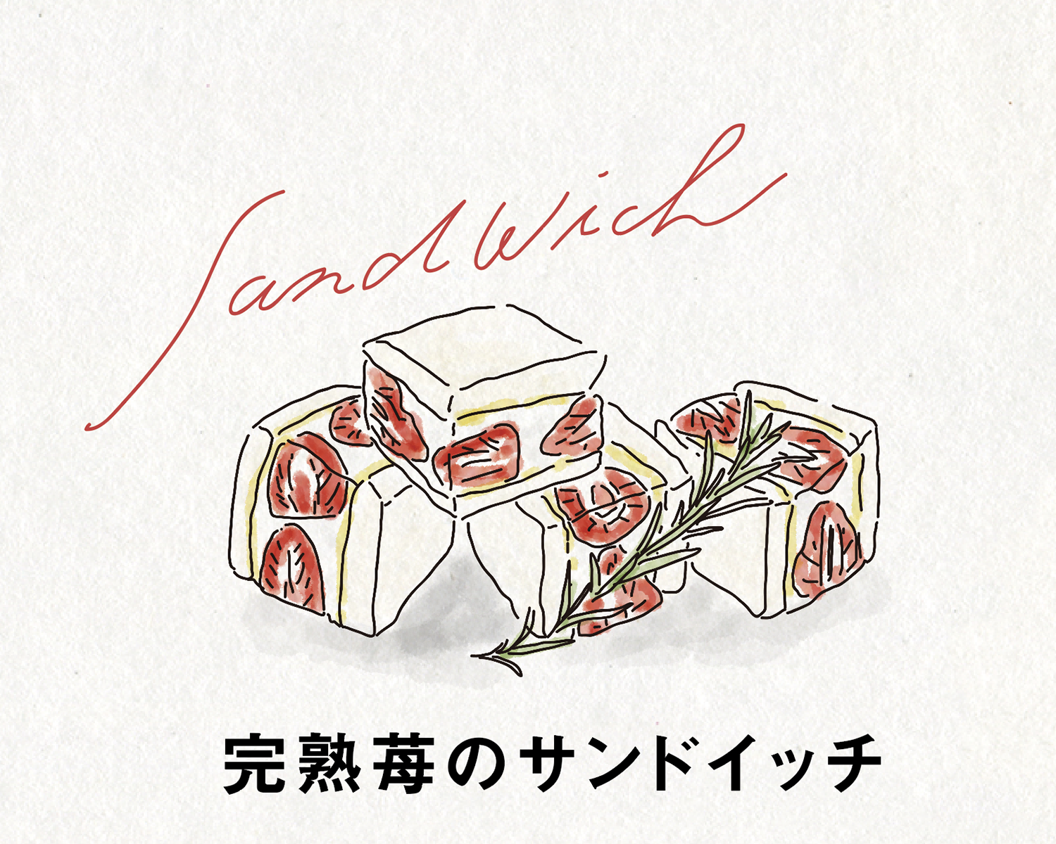 あまりにおいしいので、「完熟苺のサンドイッチ」にこぼれそうなほどかけました。食べにくくて、ごめんなさい。