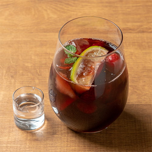 ワインにアイスティー。たくさんの生フルーツが入った飲みやすいワインです。