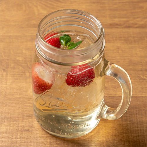 丸ごとイチゴが入った果実味溢れるピーチハイボール。