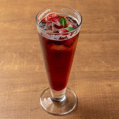 イチゴ・ラズベリーの果実が入ったカシスのベリーづくしのハイボール。